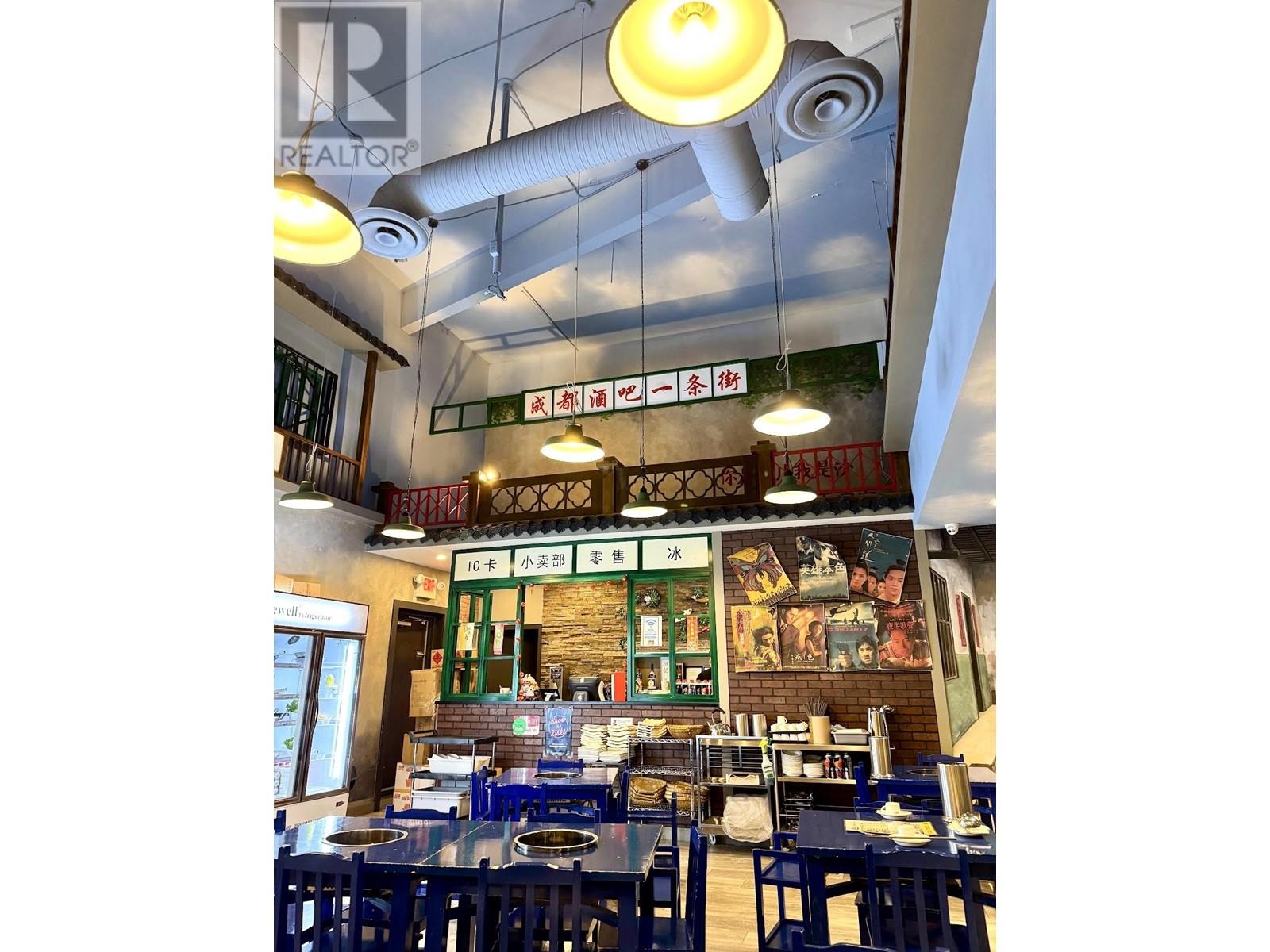 Seize the chance to acquire a well-established hot pot restaurant located in the vibrant commercial heart of Burnaby. Situated on high-traffic Kingsway and surrounded by numerous residential developments, this location offers outstanding visibility and foot traffic. The restaurant features vivid interior decor and individual table ventilation, ensuring a comfortable dining experience. A fully equipped commercial kitchen, complete with a long exhaust hood, ample storage, and a liquor license valid until 11 PM. The space spans 2,252 sq ft, providing a spacious dining area and convenient on-site parking. This versatile space offers the perfect opportunity for carrying on the current successful concept or introducing new ideas!Please contact listing agent for more information. (id:9345)...