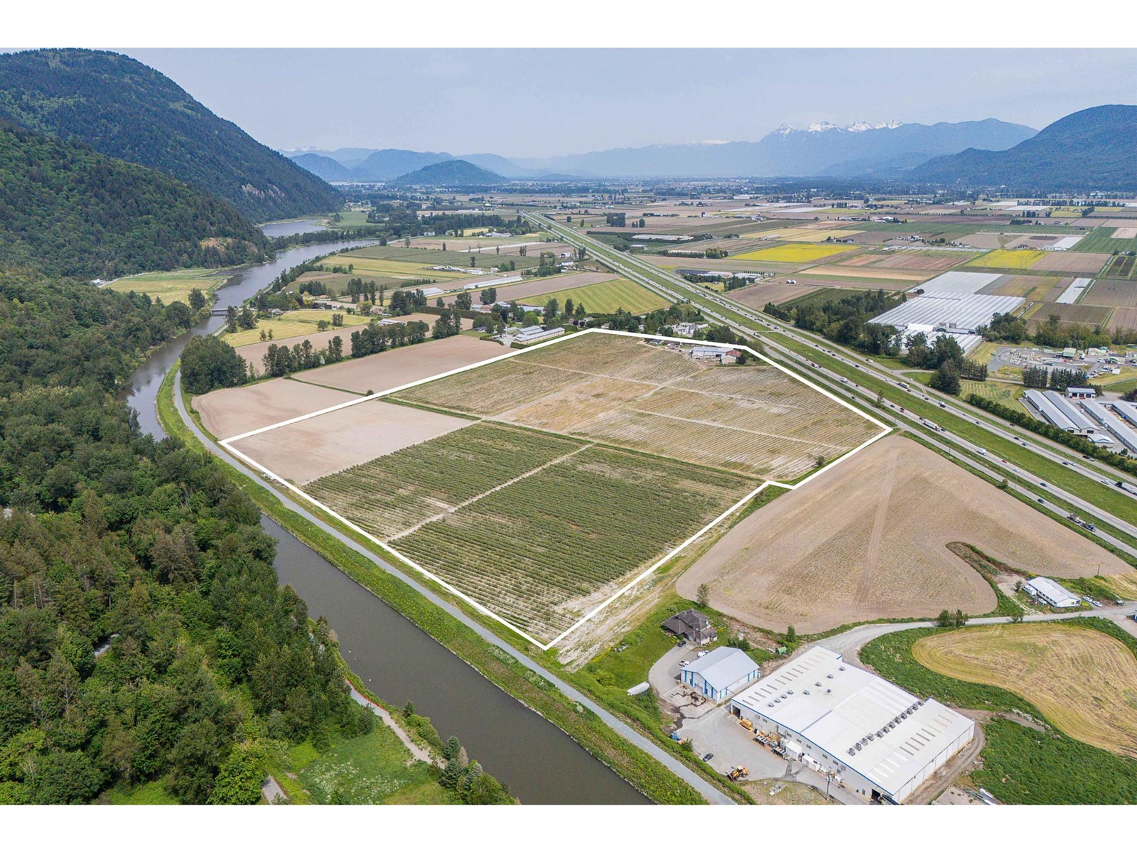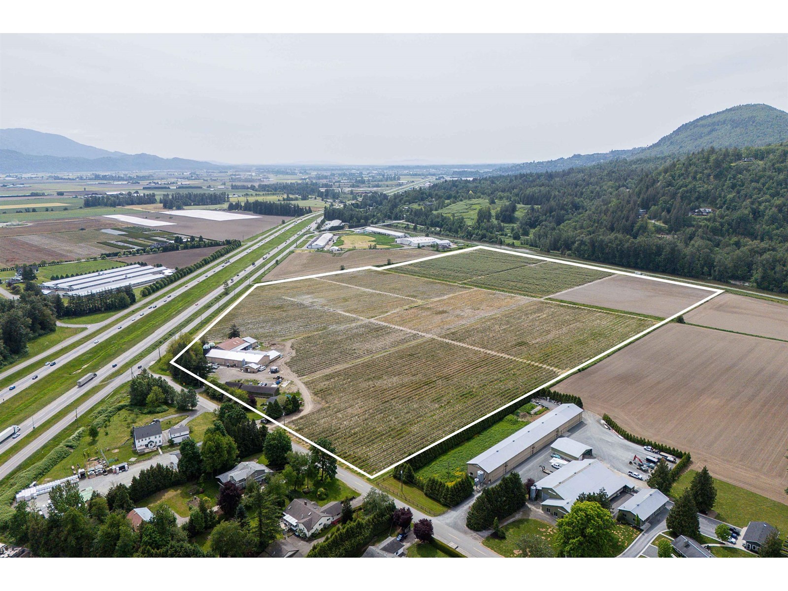58.6 ACRE BLUEBERRY FARM WITH HIGH RENTAL INCOME! Includes 2,624 SQFT Primary Home with 6 Beds/2 Baths, 1,600 SQFT Secondary Home with 4 Beds/1 Bath, and 17,000+ SQFT Storage Barn. 47 acres planted in Bluecrop, Duke, Calypso & Bonus varieties, plus 6 acres of arable land for future planting. Fully set up for drip irrigation and machine harvesting. Prime Abbotsford location with great highway exposure, minutes from city amenities. Connected to City Water, Natural Gas & BC Hydro. Excellent long-term investment! (id:9345)...