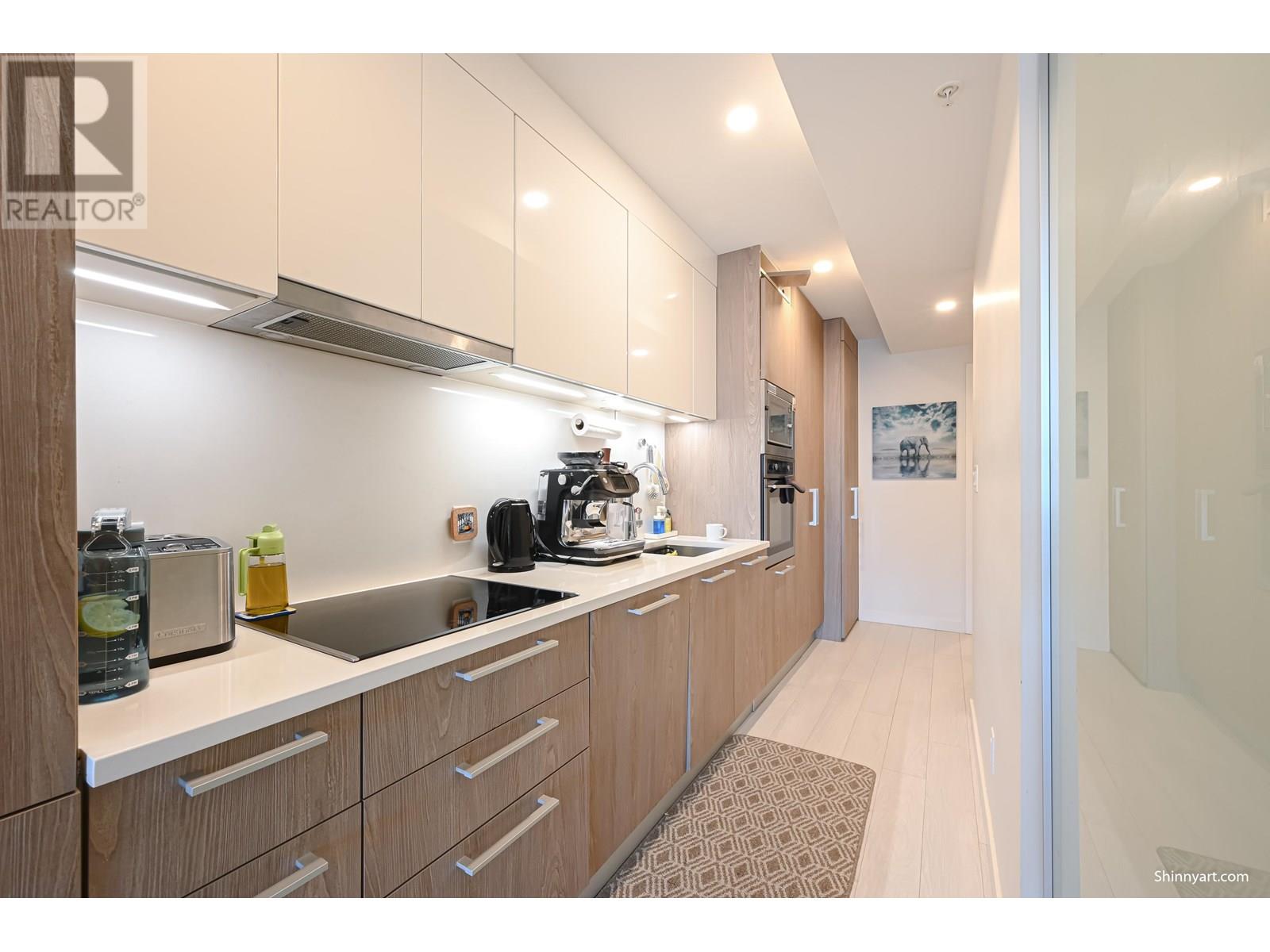 Welcome to The Independent, A South East facing, 1 Bed and Flex unit, features with efficient, open concept floor plan, flex room up-graded with closet rack with clothes hanger and shelf, 4 pieces bath room, big storage closet, contemporary style gourmet kitchen with stainless steel appliances, in-suite laundry, in-suite HVAC, floor to ceiling windows, large South East exposed balcony. The Independent complex amenities include fitness center, party room, outdoor BBQ, guest suite, workshop, children's play area, dog wash/run. Central location within the city, steps from Main St shops, restaurants, grocery stores, transit routes and upcoming Sky Train Station. 1 EV parking stall # 8 P2, 1 bike storage locker # 12 (Bike room 107) on B/F. Open House Sat Nov 29 2-4 PM (id:9345)...