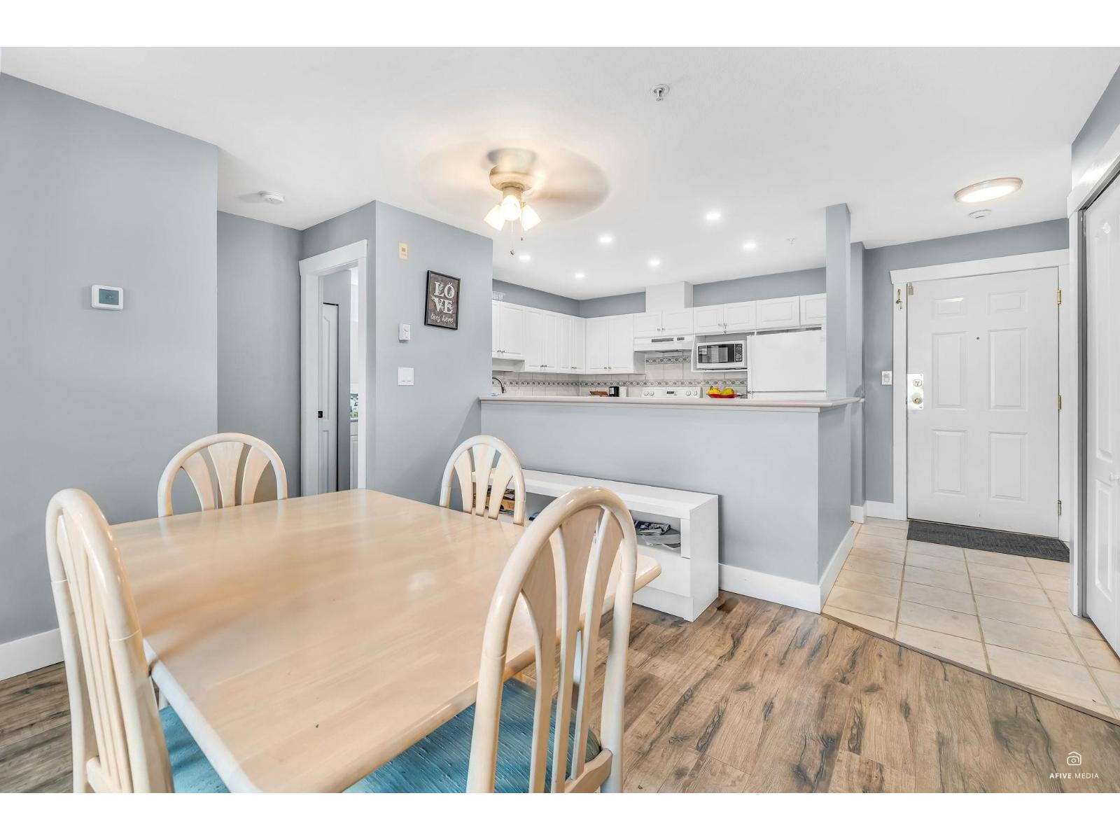 POPULAR COLLEGE PARK! This complex is well known for being in walking distance to the University of The Fraser Valley, our Abbotsford Centre, shopping, restaurants, salons and fast freeway access for the commuters. This unit is top floor with neighbours only on one side. Cozy and comfortable 921 sq ft, 2-bedroom, 2-bathroom, open concept kitchen, dining and living area. Freshly painted, newer flooring and waiting for the right family or investor. Two parking spots available one inside and one outside, both by the entrances. It's a pet friendly building, allowing 2 cats or 2 dogs or 2 caged birds. Call today for your personal viewing! (id:9345)...
