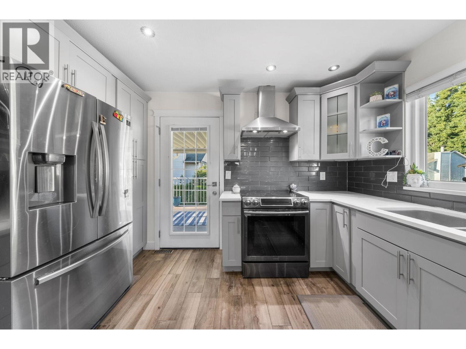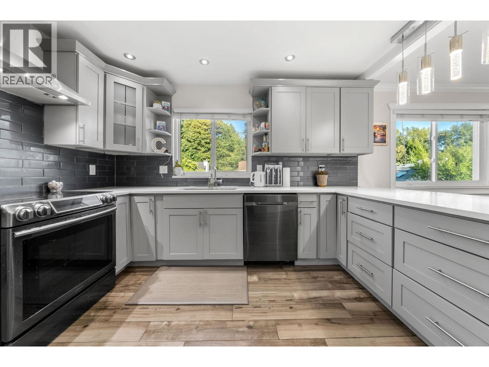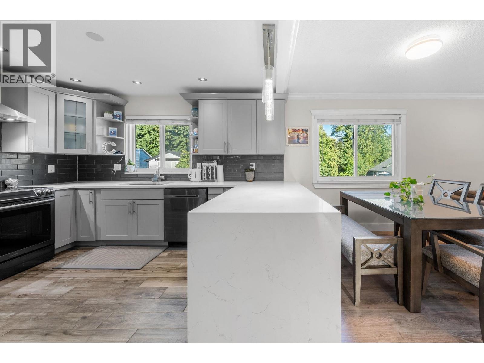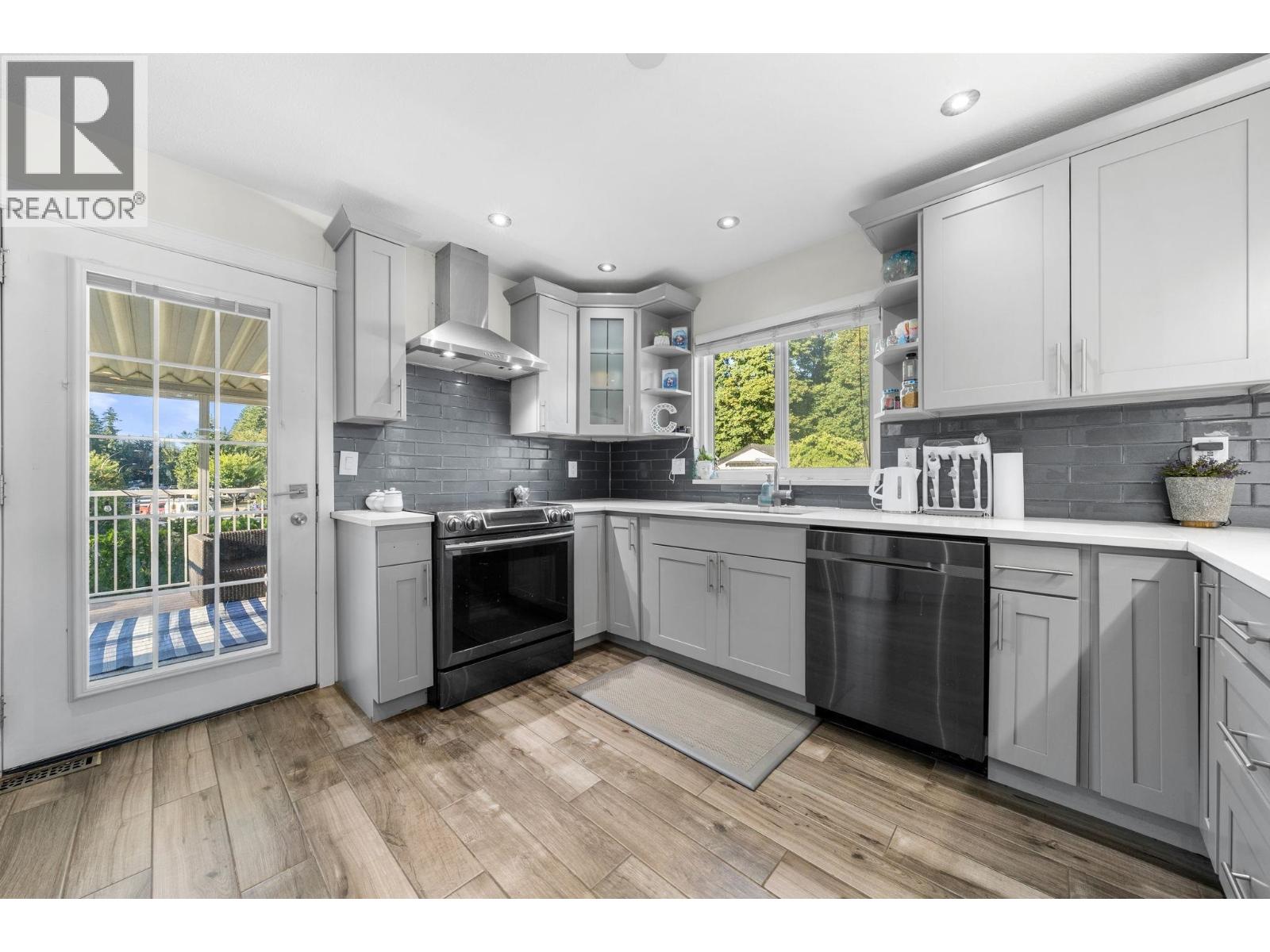 Beautiful fully renovated 5 bedroom home on corner lot in West Maple Ridge, This home is completely redone with new roof, window, gutters, siding, newer furnace, A/C, hot water tank, garage door and opener, flooring, kitchen cabinets/counters, all fixtures, glass handrail, deck & deck cover, exterior finishing and more. 3 generous bedrooms up with a 2 bedroom mortgage helper down with separate laundry and entrance. Huge driveway with room for RV or toys. Large corner lot close to schools, shopping, Westcoast Express and Golden Ears Bridge. Doesn't get much better. (id:9345)...