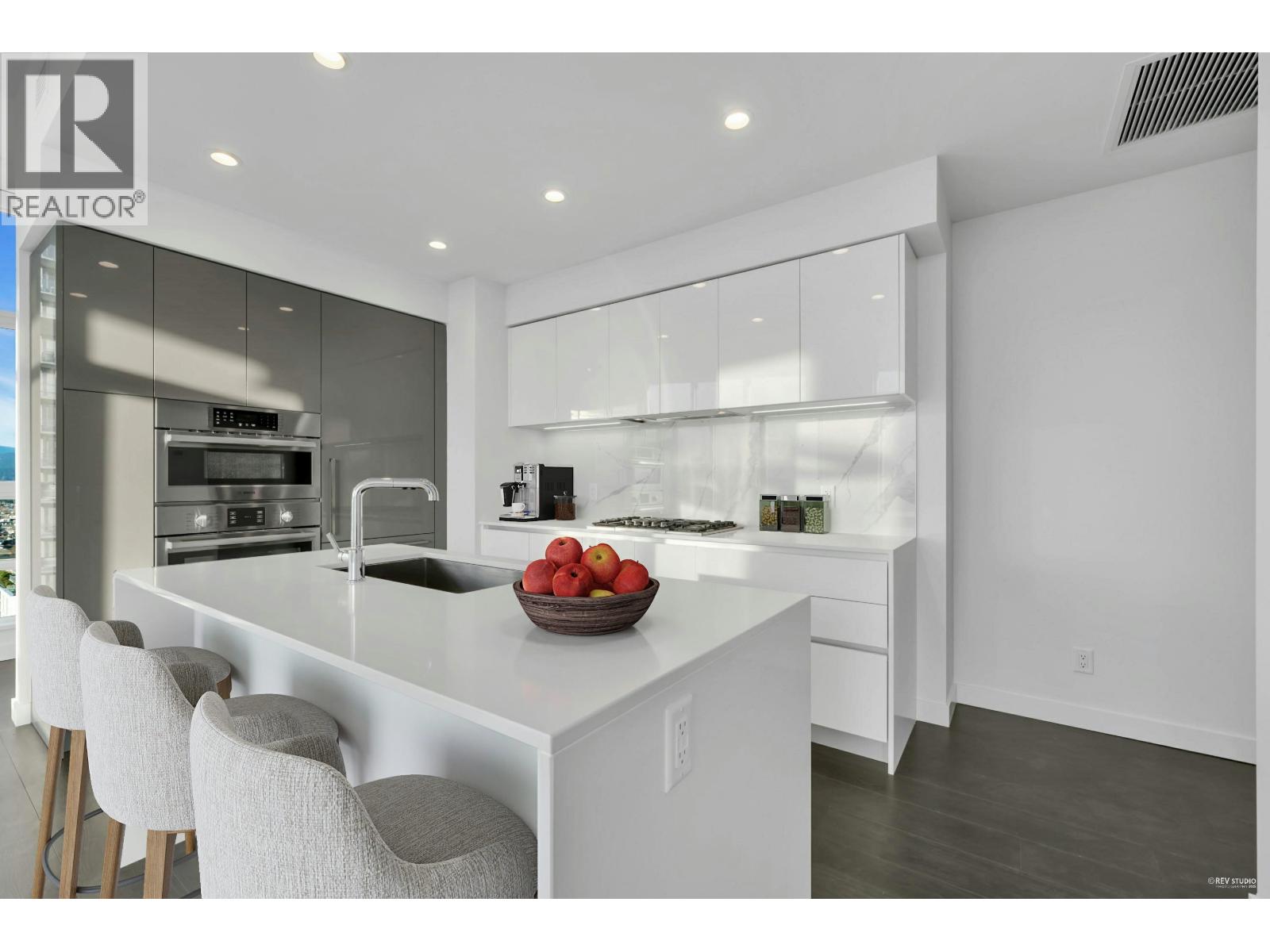 Welcome to Solo District Tower 3. This stunning 2 Bed, 2 Bath corner unit home on the 34th floor features air-conditioning, an open-concept layout with a sleek island kitchen, and premium Bosch appliances with quartz countertops. With over 10 Foot Ceilings, enjoy breathtaking north-facing mountain views from your expansive, large balcony-perfect for entertaining or relaxing above the city. Floor-to-ceiling windows flood the space with natural light, while the thoughtful floor plan ensures comfort and privacy. 1 parking stall and 1 storage locker included. With its blend of high-end finishes, modern design, and unbeatable outlook, this home offers the ultimate urban lifestyle in the most desirable area of Brentwood! Open House Sat, Jan 10 + Sun, Jan 11, 100-300 (id:9345)...