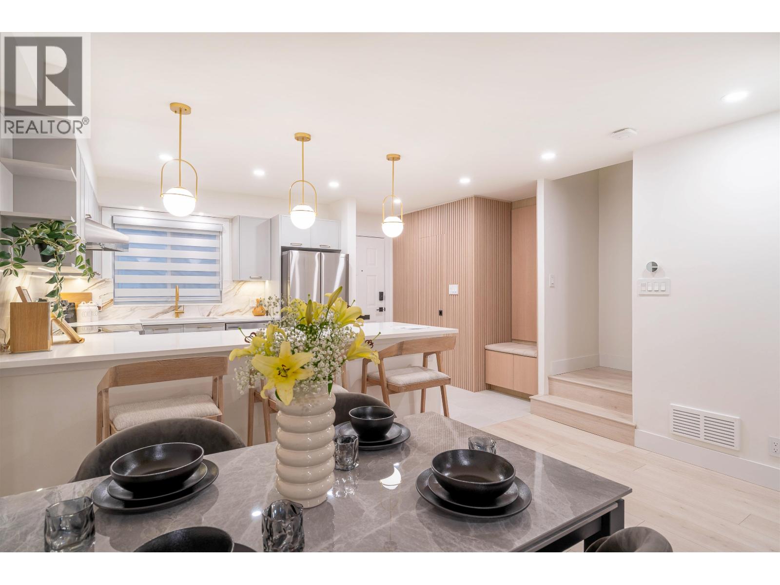 Welcome to Springdale Manor, a breathtaking, fully renovated townhome in the heart of North Burnaby! This 5 beds, 4.5 bath home offers over 2,100 sqft of luxurious living space and comes with 2 parking stalls!! Enjoy an open-concept kitchen, spacious living room, ample storage, a private backyard garden, and a rooftop patio - perfect for both relaxing and entertaining in style. Backing onto a serene greenbelt, this home offers unmatched privacy. Located in a quiet neighborhood near top schools, parks, and transit, this is a rare opportunity! (id:9345)...