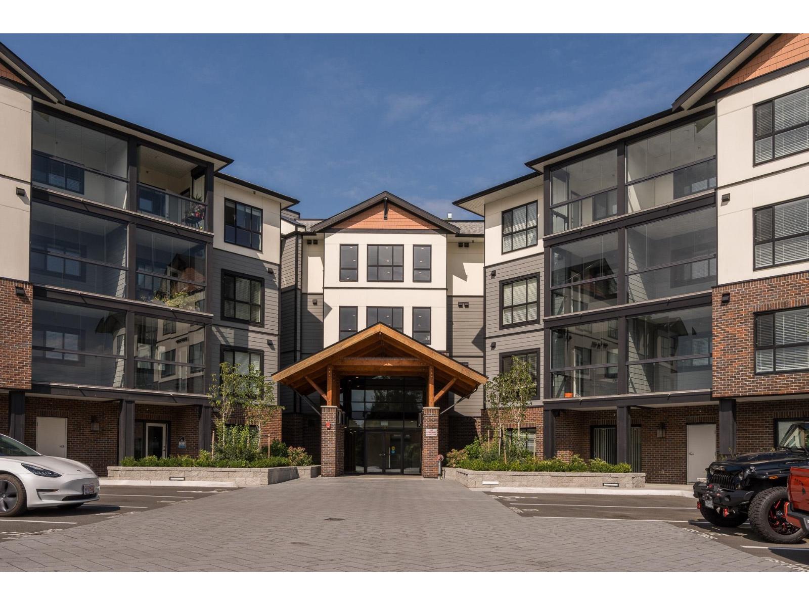 Chilliwack's best value condos with 113 suites and 19 floor plans. No age restriction and pet friendly. Features include, Air Cond, Quartz Counters, 6 quality Appliances, King Size Bedrooms, Wide plank scratch resistant flooring, LED lighting, Window Blinds, Screens, 9' Ceilings, Glass Solarium Deck Enclosure, plus this one has a huge extended patio as limited common property for just this suite. Low strata fees, Fitness room, Pool Table, Ping Pong Table, Car wash and Vac, Extra Parking, Storage, EV Car Charge Available & Much More! Open House 12:00-4:00 weekends or by private appt. (id:9345)...
