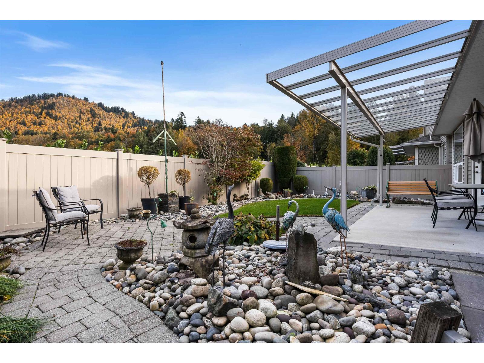 BEAUTIFULLY maintained and FULL of upgrades, this 1,541 sq. ft. rancher in sought-after Stoney Creek Ranch offers comfort AND style! Featuring 2 bedrooms plus den, some notable highlights are the 9-ft ceilings with a coffered great room, crown mouldings, CUSTOM blinds, granite counters, maple cabinets, and SS appliances - not to mention, geothermal heating/air! Enjoy a private, landscaped yard with paverstone pathways backing green space with dual patios "- PERFECT for relaxing OR entertaining. A BRIGHT, charming home in Chilliwack's premier adult gated community and close to everything you need! A great place to enjoy life, connect with neighbours, and feel right at home. * PREC - Personal Real Estate Corporation (id:9345)...