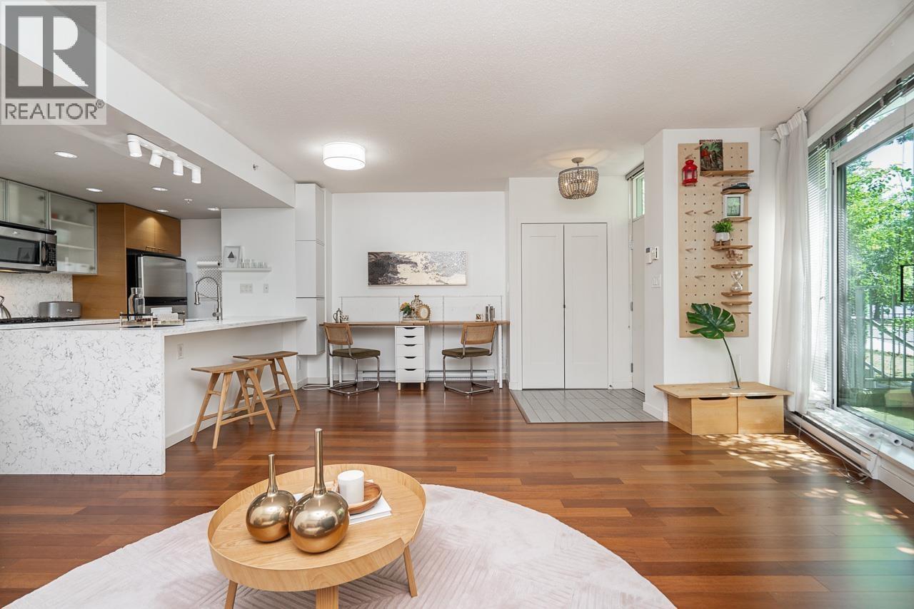 Welcome to this rarely available waterfront townhouse built by Concord Pacific in the prestigious Coopers Pointe community-offering an exceptional blend of luxury, privacy, and vibrant waterfront living. This spacious 2-bedroom, 2.5-bath residence features an entrance facing the water, allowing seamless indoor-outdoor flow. Located directly across from Coopers Park, with False Creek, Science World, and the seawall just steps away. Enjoy relaxing or entertaining on your 105 sq. ft. private patio surrounded by lush greenery. Interior highlights include a gourmet kitchen with granite countertops, breakfast bar, gas cooktop, and stainless-steel appliances. 2 parkings (#108 & #109) and storage locker (#19). (id:9345)...
