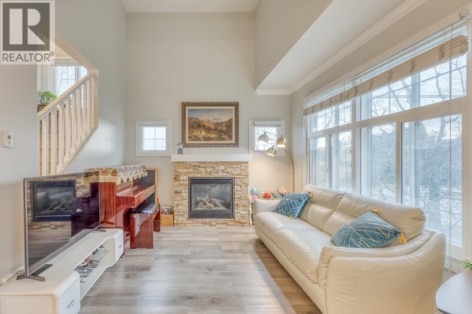 Rare opportunity to own a true townhouse.Quality-built corner unit by Penta & Bognar Homes offering a functional square floor plan with windows on three sides with side-by-side garage and double windows (two per opening) for enhanced soundproofing and insulation. Bright 4 bedrooms and 3 full bathrooms. Open-concept kitchen features granite countertops and island, gas fireplace, and walk-out terrace, ideal for entertaining. Primary bedroom on the main floor with walk-in closet and ensuite. Upper level includes two bedrooms, full bathroom, and laundry. Bonus landing nook and a generous wrap-around backyard perfect for family living and gatherings.Best catchment school Maple lane Elementary & Steveston London Secondary. (id:9345)...